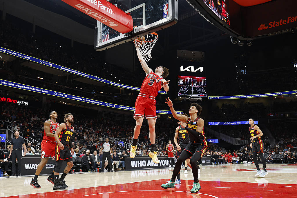 【搜狐体育战报】北京时间12月22日NBA常规赛,客场作战的公牛以152-150击败老鹰,老鹰遭遇3连败,公牛取得3连胜。吉迪19分9篮板12助攻,约翰逊36分11篮板9助攻。